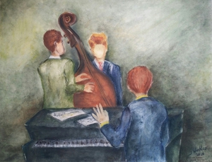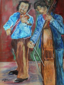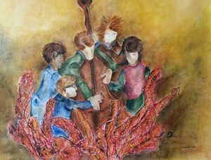 2020The Bass is in het geheel de hoofdpersonage in deze schilderij. Hij is Jazzy, diep, vurig.